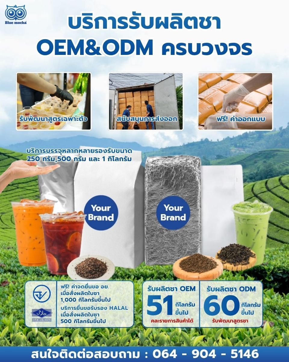 - บริการรับผลิตชา OEM & ODM ครบวงจร : สำหรับผู้ที่ต้องการสร้างแบรนด์ชาเป็นของตัวเอง
