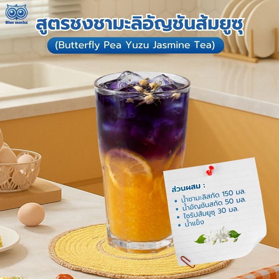 6. สูตรชงชามะลิอัญชันส้มยูซุ (Butterfly Pea Yuzu Jasmine Tea)