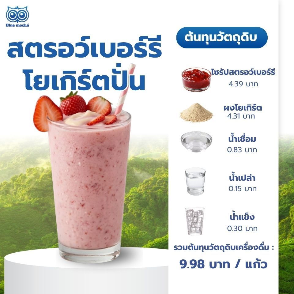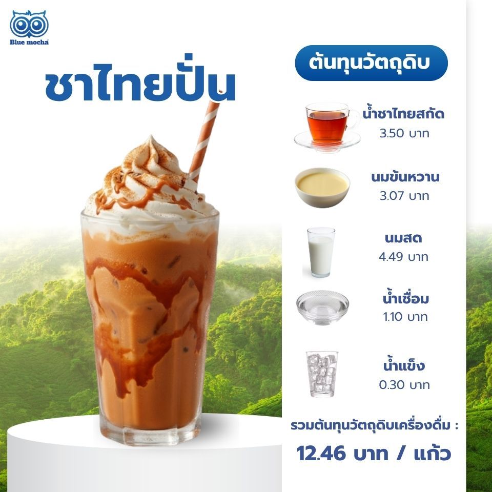 ตอบ : หลักการสำคัญคือการบริหารต้นทุนวัตถุดิบให้อยู่ในเกณฑ์ประมาณ 40-50% ของราคาขาย คุณสามารถนำเบสชาไทย ชาเขียว หรือนมสด ไปผสมกับไซรัปผลไม้กลิ่นอื่น ๆ ที่มีในร้าน เช่น ชาไทยสตรอว์เบอร์รีปั่น ชาเขียวมะนาวปั่น หรือนมสดคาราเมลปั่น ก็จะได้เมนูใหม่ ๆ ดึงดูดลูกค้าเพิ่มขึ้น โดยที่ต้นทุนยังคงถูกควบคุมไว้ได้