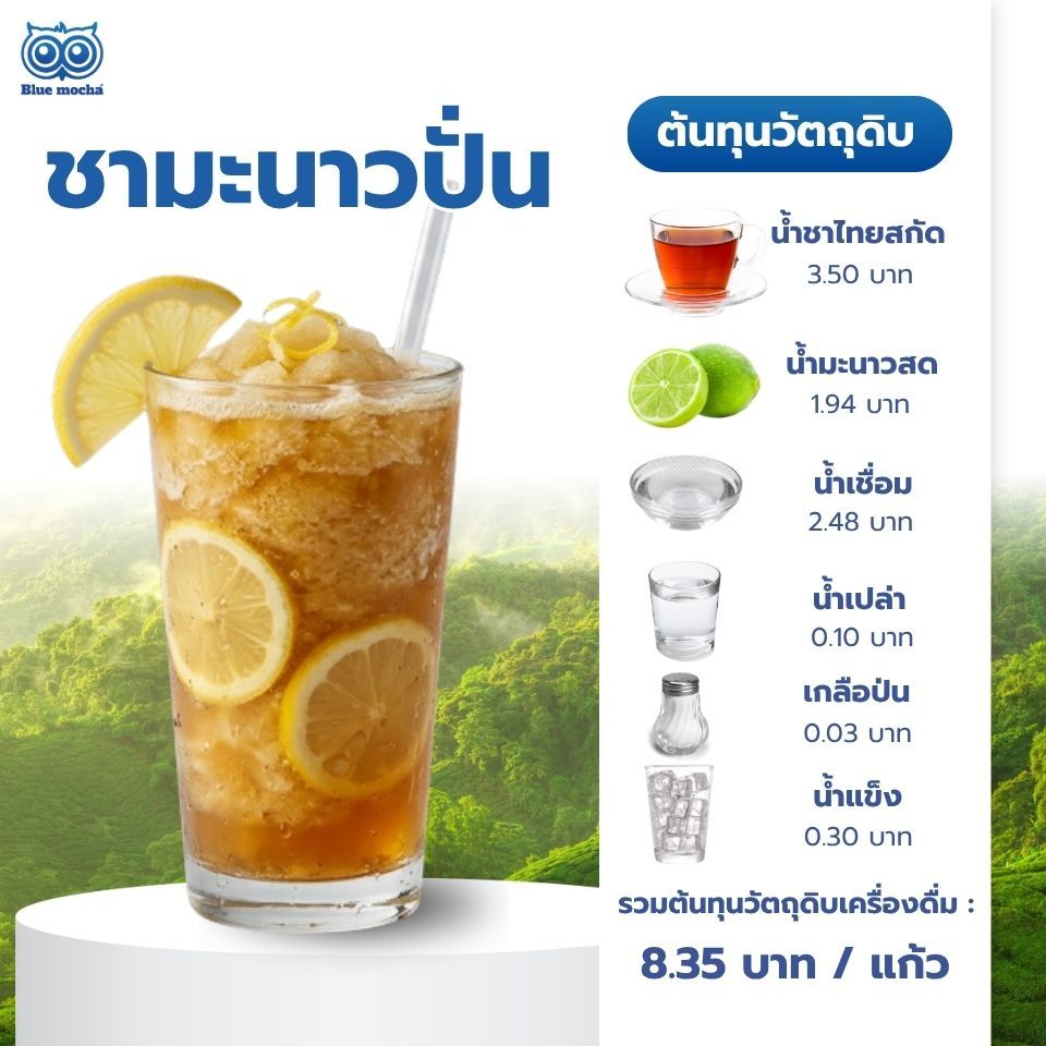 รวมต้นทุนวัตถุดิบเครื่องดื่ม : 8.35 บาท / แก้ว
