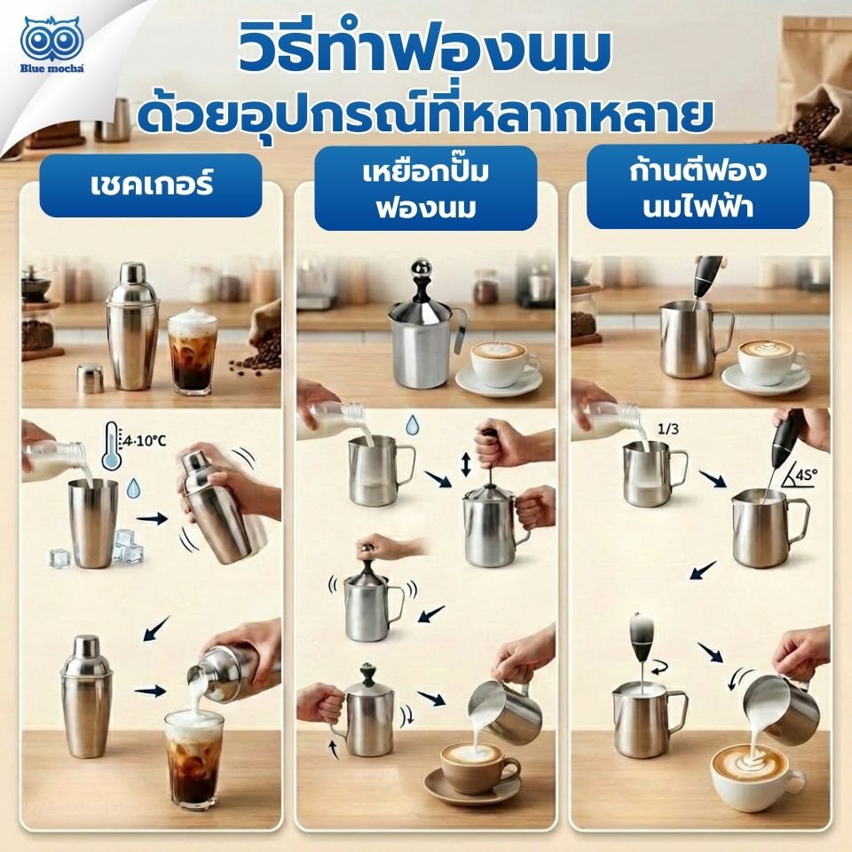 วิธีทำฟองนมด้วยอุปกรณ์ที่หลากหลาย